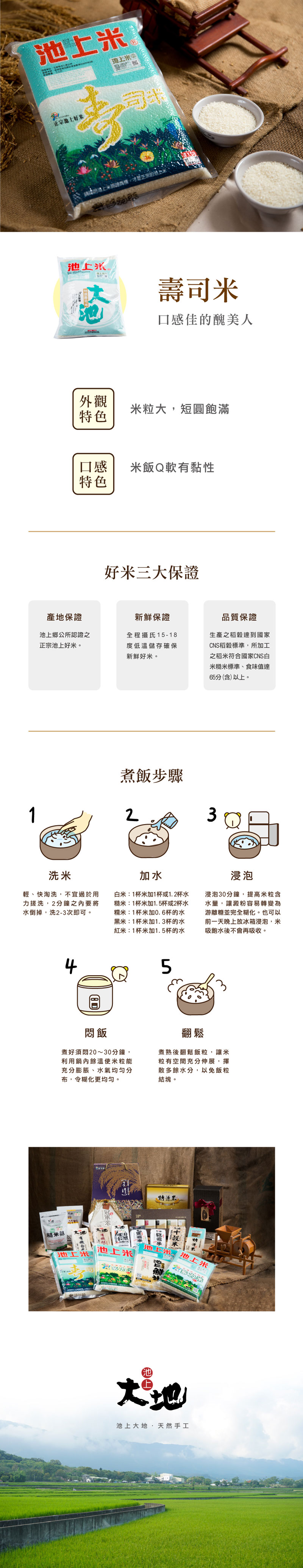 ✅精選適合池上黏質沖積土質的冠軍優良稻米品種,米粒充實飽滿、粒型均一、色澤鮮明。