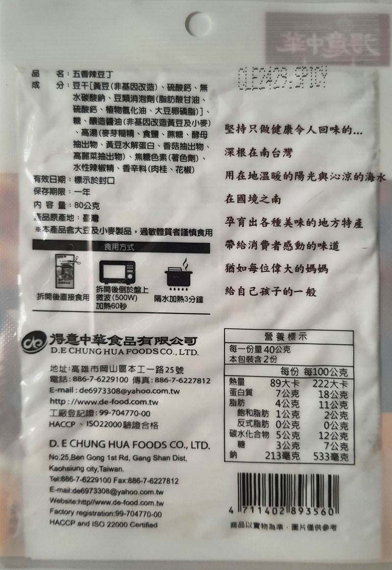DE02 得意中華 五香辣豆丁 80g