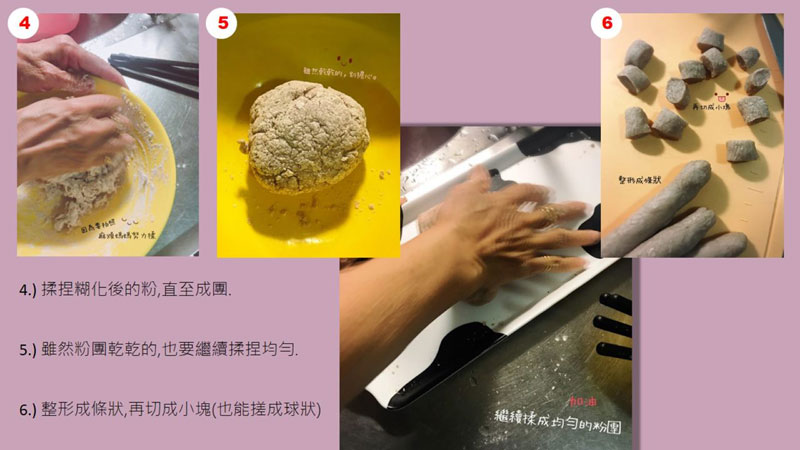 3.粉團量五倍以上水,燒開沸騰放入芋圓,煮至再次沸騰持續煮25 分鐘.