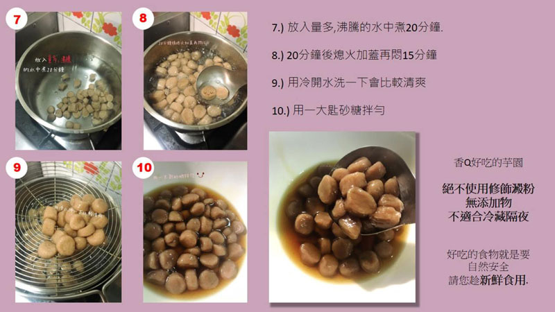 ✅採生鮮芋頭煮熟後再製成乾粉,兑入無修飾的澱粉,成分單純做法簡單
