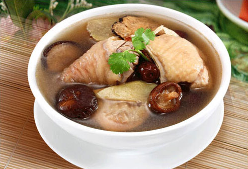 3.再入雞腿肉、紅蘿蔔及香菇煮熟即可