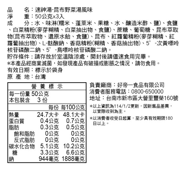 HD30 牛頭牌 速神湯 昆布野菜湯 50g 3入