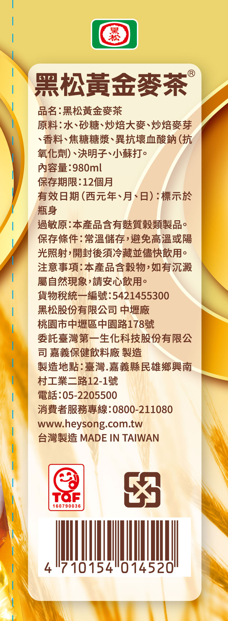 HS10 黑松 黃金麥茶 980ml