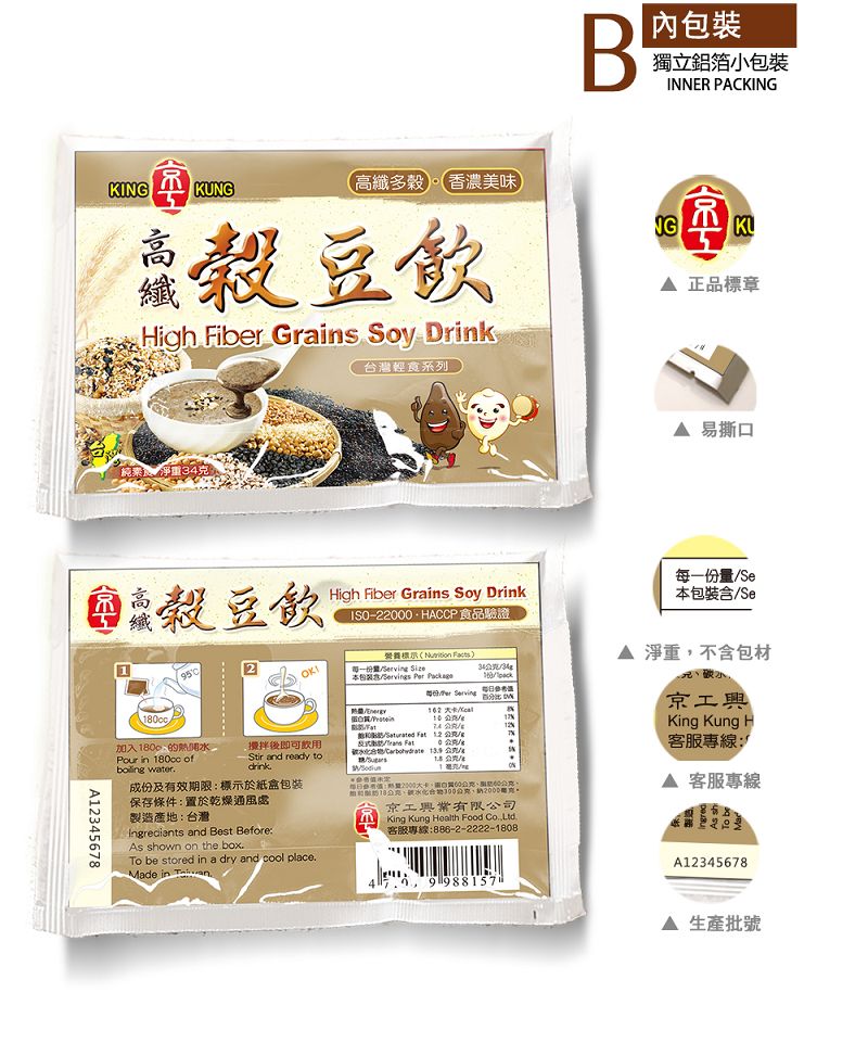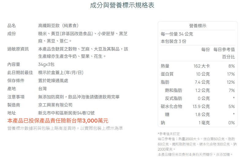 KK26 京工 高纖穀豆飲 34g 3入