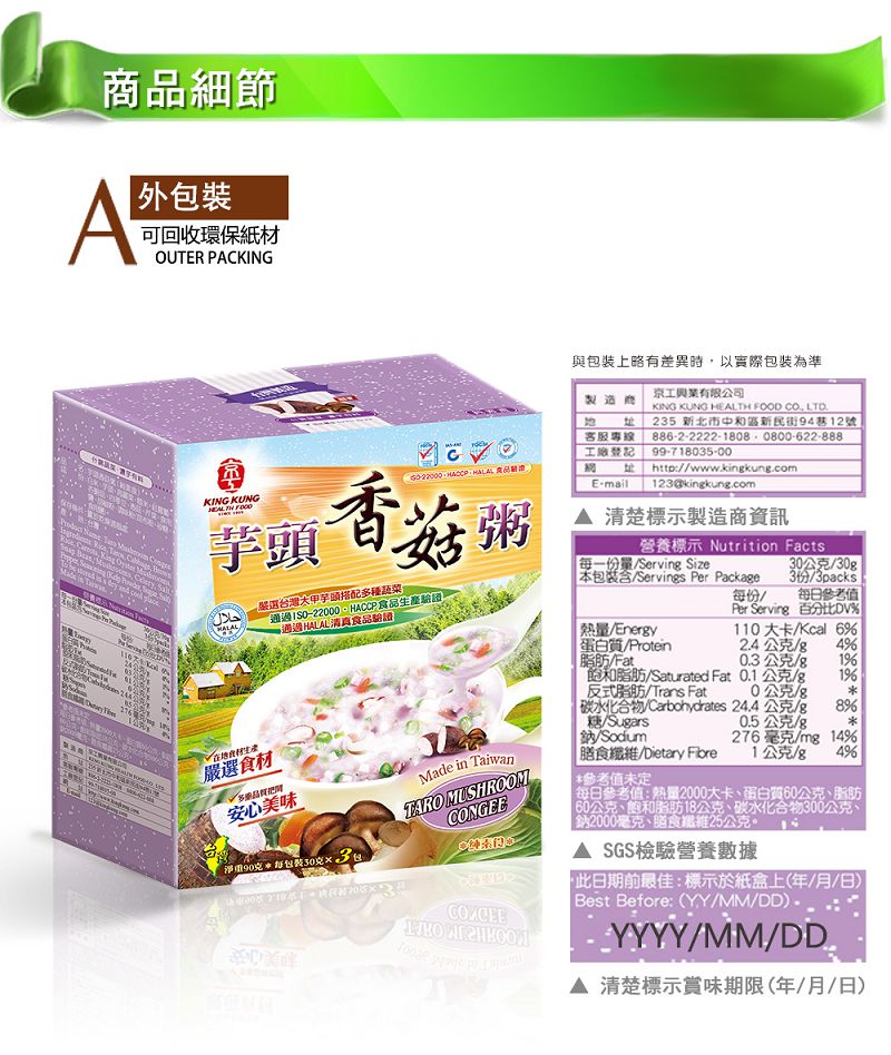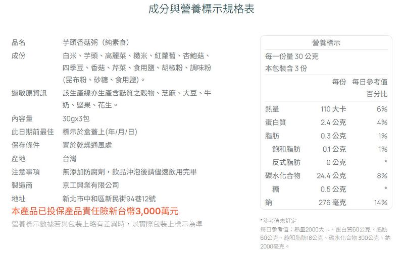 KK29 京工 芋頭香菇粥 30g 3入