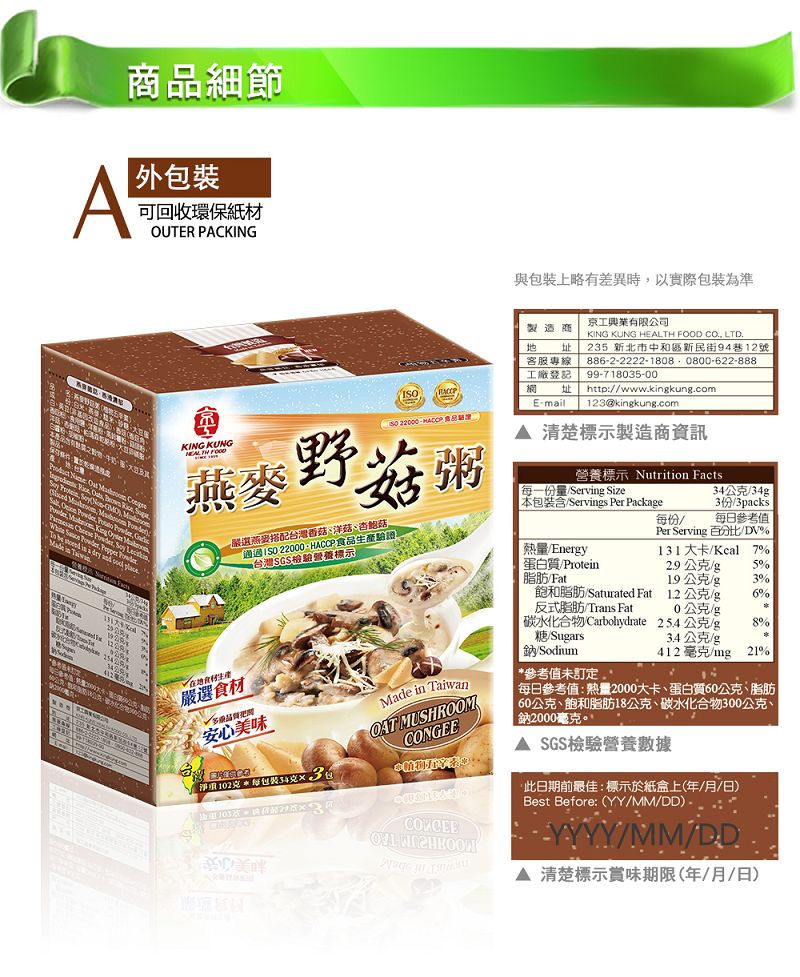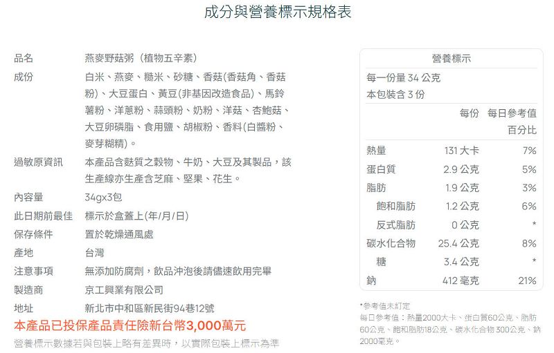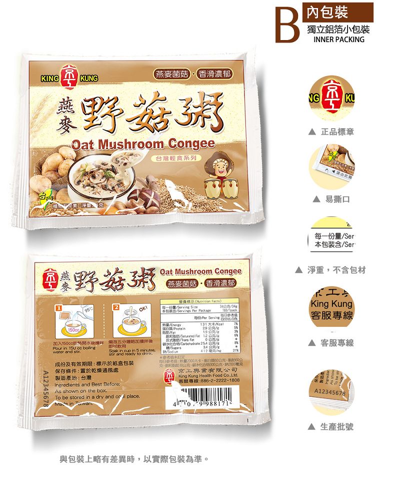KK31 京工 燕麥野菇粥 34g 3入