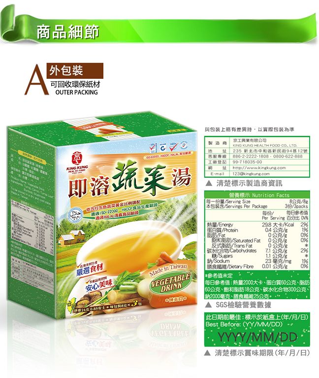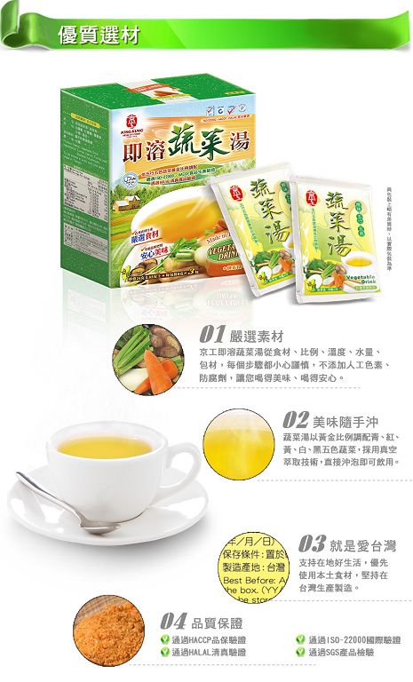 LD01 龍鼎 鹹豬肉佐料粉 140g ★絲絲入味,鹹香下飯★ 【使用方式】 ➡️ 取3kg的五花肉,肩胛肉,或後腿肉切成厚度 1.5cm 的肉片 ➡️ 肉片兩面均勻抹上本調味佐料粉 ➡️ 酌量添加蒜頭150g ➡️ 懷著愉快心情幫肉肉抓龍按摩5分鐘,放入冰箱冷藏三天 ➡️ 冷藏時小心..7.50€未稅:6.88€LD02 龍鼎 肉排調味品 210g ★香酥Q彈,鮮嫩多汁,超級好吃★ 【使用方式】 ➡️ 取3kg的里肌肉或後腿肉切成0.5CM厚片 ➡️ 取三碗水,第一碗水和本調味品拌勻倒入肉排 ➡️ 懷著愉快心情攪拌攪拌,湯汁收乾再加入第二碗水 ➡️ 來點音樂攪拌攪拌到湯汁收乾再加入第三碗水 ➡..5.80€未稅:5.80€LD03 龍鼎 鹹酥雞調味品 175g ★鹹鹹酥酥,香香嫩嫩,好吃到爆★ 【食材準備】 ➡️ 本調味品 1包,雞胸肉 3kg,水 200 cc. 【使用方式】 ➡️ 雞胸肉去皮切成 2cm 塊狀,沖洗乾淨瀝乾。 ➡️ 水跟本調味品調勻倒入切塊雞肉,懷著愉快心情一起攪拌均勻。 ➡️ 約5..7.50€未稅:6.88€LD04 龍鼎 排骨酥調味品 200g ★金黃香酥,黯然消魂,好過癮啊★ 【食材準備】 ➡️ 本調味品 1包,排骨 3kg,水 200 cc,烏醋 50 cc,麻油 50 cc. 【使用方式】 ➡️ 排骨切小段約 2cm 長,沖洗乾淨瀝乾。 ➡️ 水跟本調味品調勻倒入排骨,懷著愉快心情一..6.54€未稅:6.00€LD05 Red Yeast Powder 150g LD05 龍鼎 紅糟調味品 150g ★紅裡透白,暗香浮動,百吃不厭★ 【食材準備】 ➡️ 本調味品 1包,五花肉或梅花肉 3kg,米酒 50 cc, 【使用方式】 ➡️ 五花肉或梅花肉切1.5公分厚大片。 ➡️ 本調味品均勻抹於豬..7.52€未稅:6.90€【仙知味】 蚵仔煎粉 ~非常道地的台灣小吃,自己在家中,亦能輕鬆的吃到 ~★ 廚房內的好幫手 ★ 輕鬆做出美味料理 ★ 蚵仔煎在家做,方便快速又有成就感 容量: 500g 成份: 樹薯粉、醋酸澱粉。 產地: ..3.80€未稅:3.49€SA03 Pudding powder brown sugar flavor 300g SA03 仙知味 黑糖粉粿粉 300g ⭐非常道地的台灣小吃,自己在家中,亦能輕鬆的吃到。 ⭐精緻調理, 品味生活。 ⭐料理DIY, 方便又衛生。 ⭐廚房內的好幫手。 ✅輕鬆做出美味粉粿只需幾分鐘 ..3.00€未稅:3.00€【新光】 藥膳排骨 調理包 ~傳統台灣的溫補藥膳 ~ ★ 御用極品好料理 ★ 味香質純是上選 ★ 傳統美食來品嚐 ★ 溫暖情意滿心頭 ★ 台灣人重食補,每年一到秋冬,羊肉爐、薑母鴨、藥燉排骨等藥膳頓時活絡起來,其..4.30€未稅:3.95€SK02 新光 蒙古麻辣火鍋湯底 75g ~融合數十種藥膳與辛香料所調製而成;如孜然、茴香、大紅袍花椒、草果、白荳蔻、肉桂、甘草、川芎、當歸、白胡椒、辣椒、月桂葉。口感香醇不燥口,滋味豐美。 加入食材後,口感將轉而厚實香醇,湯頭美味迷人。新光牌麻辣火鍋湯底,口感傳香,極品推薦! ..5.41€未稅:5.41€SK03 新光 天王十全調味包 60g ~冬天溫補,夏天涼補,一年四季皆適用 , 傳統台灣的十全大補藥膳 ~ ★ 御用極品好料理 ★ 味香質純是上選 ★ 傳統美食來品嚐 ★ 溫暖情意滿心頭 ★ 台灣人重食補,每年一到秋冬,..4.30€未稅:3.95€SK04 新光 四神湯 90g ~四季食補, 暖胃鍋物~ ★ 御用極品好料理 ★ 味香質純是上選 ★ 傳統美食來品嚐 ★ 溫暖情意滿心頭 ★ 四神湯: 「四神湯」是民間傳統的藥膳,原稱「四臣湯」,是由四味中藥(芡實、蓮子、淮山、茯苓..5.78€未稅:5.30€SK07 新光 青草茶調味包 100g ▶️ 御用極品好味道,味香質純是上選,傳統美食來品嚐,消暑退火好清涼。 ▶️ 嚴選上等鳳尾草,黃花蜜菜,薄荷,仙草茶,珠仔草,採古法特殊烘焙高調製而成。 ▶️ 風味獨具,味香質純。 ▶️ 手作DIY 樂趣多更多。 ▶️ 製作簡易、快速又方便。 ..4.20€未稅:3.85€SK08 新光 仙草茶調味包 100g ▶️ 御用極品好味道,味香質純是上選,傳統美食來品嚐,消暑退火好清涼。 ▶️ 香醇濃郁,口感滑順。 ▶️ 手作DIY 樂趣多更多。 ▶️ 製作簡易、快速又方便。 ▶️ 動手自己做,安心又健康。 ★ 品牌故事: 新光洋菜 ★ ..4.20€未稅:3.85€
