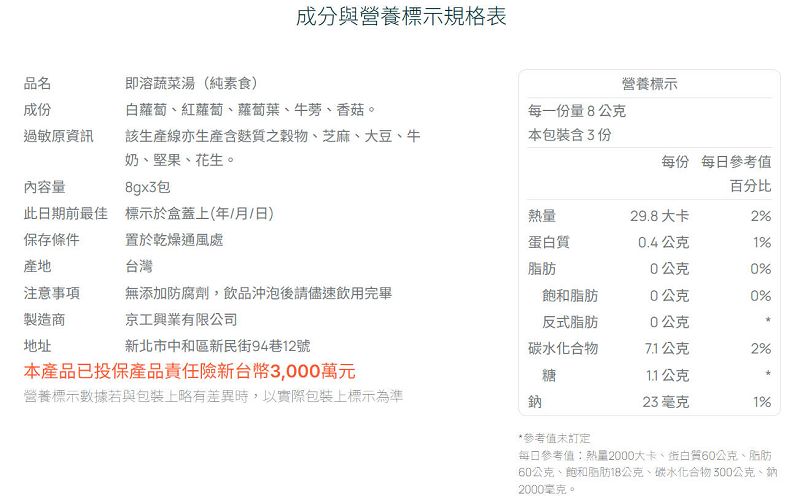 JJ02 珍珍 辣味魷魚絲 50g ✅珍珍魷魚絲, 真正有意思~ ✅來到歐洲後找不到台灣來的魷魚絲, 悶了好久好久, 真是沒意思。 ✅現在終於找到選用深海新鮮魷魚為原料的珍品。 ✅使用最先進的裂絲設備。 ✅獨家調味配合多道工法, 特製烘焙香柔口感。 ✅微波加熱後香氣四溢風味絕佳, 歡樂休..1.00€ 5.50€未稅:1.00€JJ05 Shredded Dry Squid 28g JJ05 珍珍 辛鮮花枝 香蒜 28g ✅選用太平洋新鮮花枝,製漿烘烤熟成製作! ✅咀嚼有勁,Q彈美味,回味無窮。 ✅微波加熱後香氣四溢風味絕佳, 歡樂休閒同樂享用。 ✅商品規格:28g ± 5% ▶️原產地:台灣 ▶️免責聲明:..0.50€ 3.30€未稅:0.50€JJ06 Shredded Dry Squid Spicy 28g JJ06 珍珍 辛鮮花枝 香辣 28g ✅選用太平洋新鮮花枝,製漿烘烤熟成製作! ✅咀嚼有勁,Q彈美味,回味無窮。 ✅微波加熱後香氣四溢風味絕佳, 歡樂休閒同樂享用。 ✅商品規格:28g ± 5% ▶️原產地:台灣 ▶..0.50€ 3.30€未稅:0.50€LY21 Plant-Based Braised Pork Belly 80g LY21 Lypid 植物滷肉 80g ✅天啊,我吃到了什麼?不敢相信這香滑Q嫩的五花肉是素的! ✅Lypid 獨家研發出的純植物油脂 PhytoFat™。在質地、口感、風味傳遞、烹調表現皆完美重現動物脂肪。 ✅..2.50€ 5.00€未稅:2.50€LY22 Plant Based Braised Pork Belly Noodle 285g LY22 Lypid 台式滷肉纖拌麵 (Vegan 五辛素) 285g ✅天啊,我吃到了什麼?不敢相信這香滑Q嫩的滷肉是素的! ✅使用LYPID 專利 PHYTOFAT™ 技術打造完美肥瘦比例的植物..1.00€ 7.00€未稅:1.00€LY24 Chili MahJong Konjac Noodles 325g LY24 Lypid 秘製雙醬纖拌麵 (Vegan 五辛素) 325g ✅天啊,我吃到了什麼?不敢相信這香滑Q嫩的滷肉是素的! ✅使用LYPID 專利 PHYTOFAT™ 技術打造完美肥瘦比例的植物滷肉。 ✅100..1.00€ 7.50€未稅:1.00€SF41 Tea Capsule 7 Styles SF41 水屋厚茶 茶膠囊體驗組 7入 ⭐收錄七款經典風味,每種各一顆,是認識茶膠囊的最佳入門選擇,環保可分解,喝得新鮮又安心。 ✅膠囊即泡|茶感不將就:相容 Nespresso Original 系列機型,一鍵萃取,輕鬆享受好茶 ✅生質膠..4.00€ 5.50€未稅:4.00€SG06 薌園 燕麥糙米豆漿 384g ★採用非基因改造黃豆 ★保留全黃豆營養與風味,優質植物性蛋白 ★滿滿的穀物精華、口感豐富、濃純滑順 ★ 好消化,易吸收 ★ 純素食,保留原料天然風味、無添加奶精調味 ★ 細微化粉末,易沖泡,即沖即溶,冷熱皆可沖泡,不需煮沸 ★ 無蔗糖、無人工..6.00€ 7.16€未稅:6.00€SN13 三陽 東坡竹輪 80g ✅想和吃素的朋友在看電視時一起分享素食零嘴嗎? ✅推薦您一款在桃園中壢地區最夯的素食零食--竹輸! ✅精選優質小麥蛋白及獨家配方滷汁,由老師傅經長時間慢火細熬使滷汁完全融入,再經由高溫烘烤,緊緊鎖住每一絲美妙滋味。 ✅形狀方便入口不沾手,天然的麥香,多層次的..179.00€ 3.58€未稅:179.00€SN14 三陽 東坡辣竹輪 80g ✅想和吃素的朋友在看電視時一起分享素食零嘴嗎? ✅推薦您一款在桃園中壢地區最夯的素食零食--竹輸! ✅精選優質小麥蛋白及獨家配方滷汁,由老師傅經長時間慢火細熬使滷汁完全融入,再經由高溫烘烤,緊緊鎖住每一絲美妙滋味。 ✅形狀方便入口不沾手,天然的麥香,多層次..1.79€ 3.58€未稅:1.79€