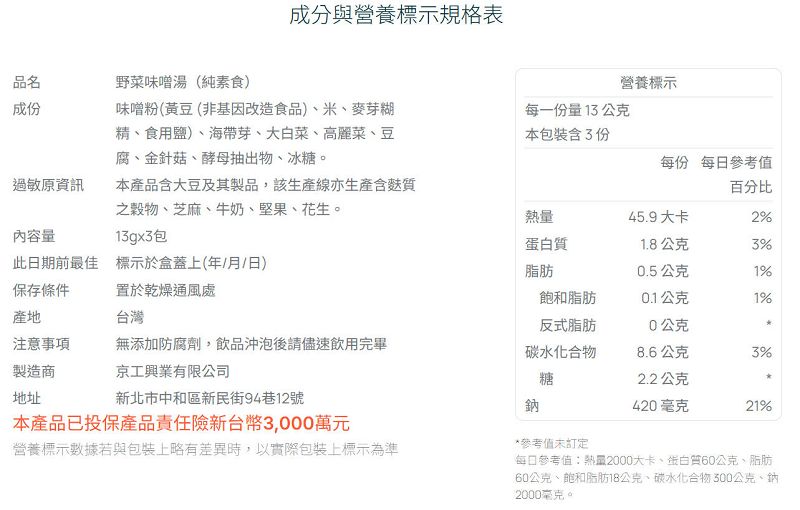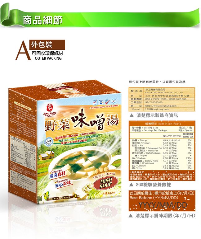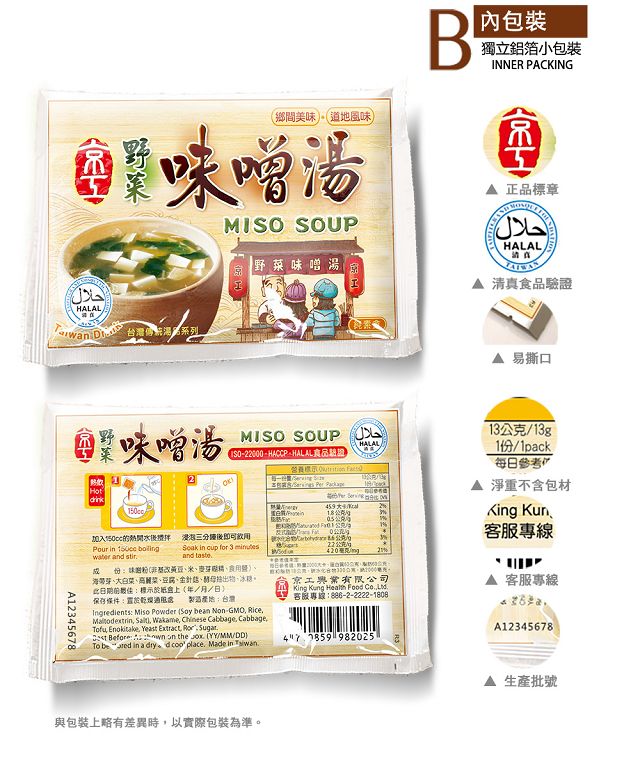 KK37 京工 野菜味噌湯 13g 3入