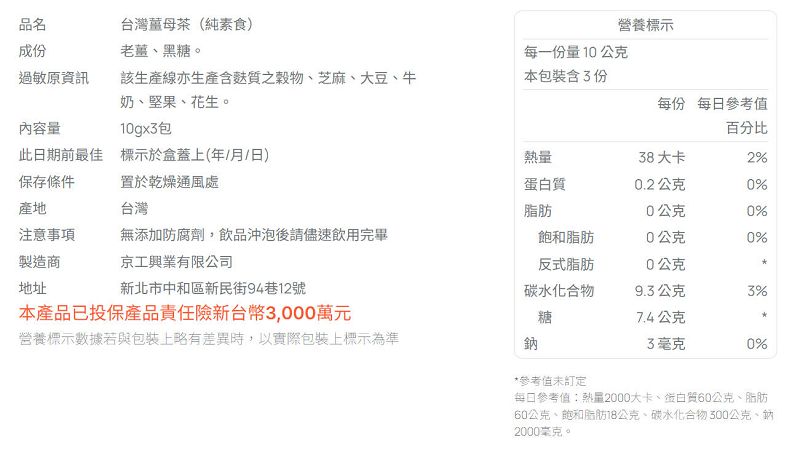 KK39 京工 台灣薑母茶 10g 3入
