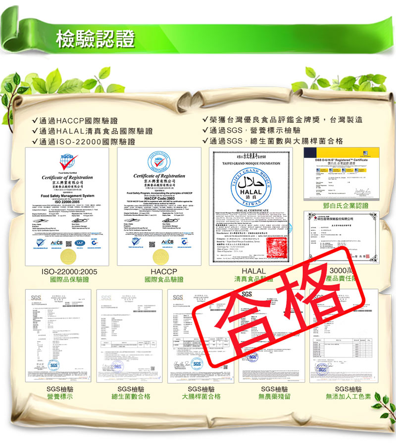 ⭐通過 ISO 22000,HACCP,HALAL,SGS。