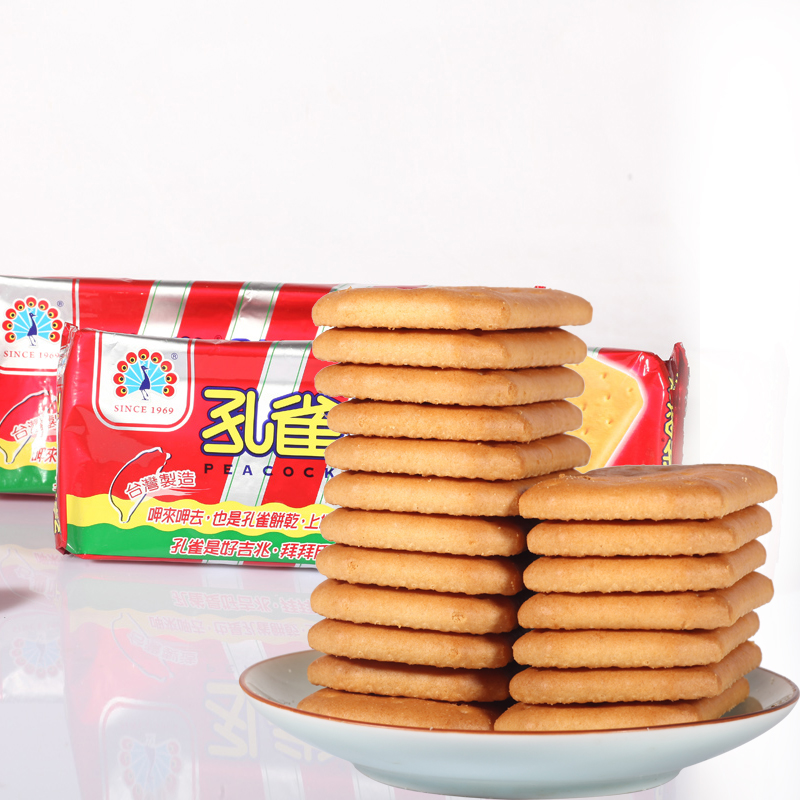 人人從小吃到大的孔雀餅乾以蛋黃為主成分,使用獨家研發製程與配方,烘焙出充滿濃濃蛋黃香以及無可取代的酥鬆口感,是大人小孩都愛吃的暢銷餅乾。