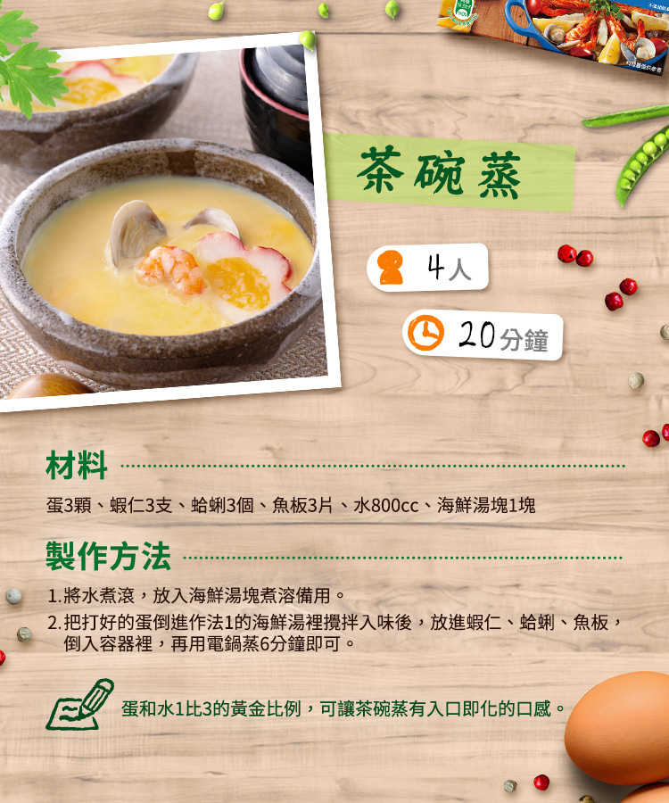 ✅搭配多種料理,讓美味輕鬆上桌 (例如:燉飯、湯麵等……)。