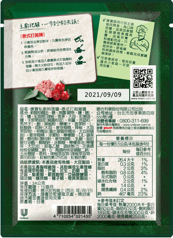 KP18 康寶 私廚料理醬 泰式打拋豬 34g