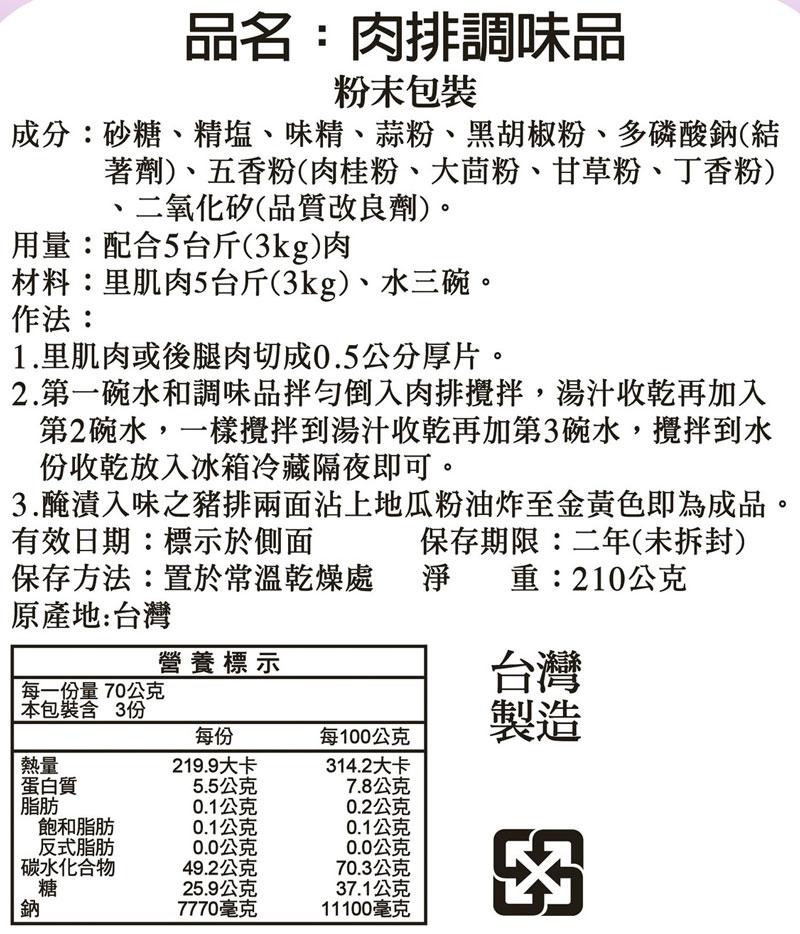 ㊙️ 若覺得3kg肉肉太多,請按等比例調配本調味品即可