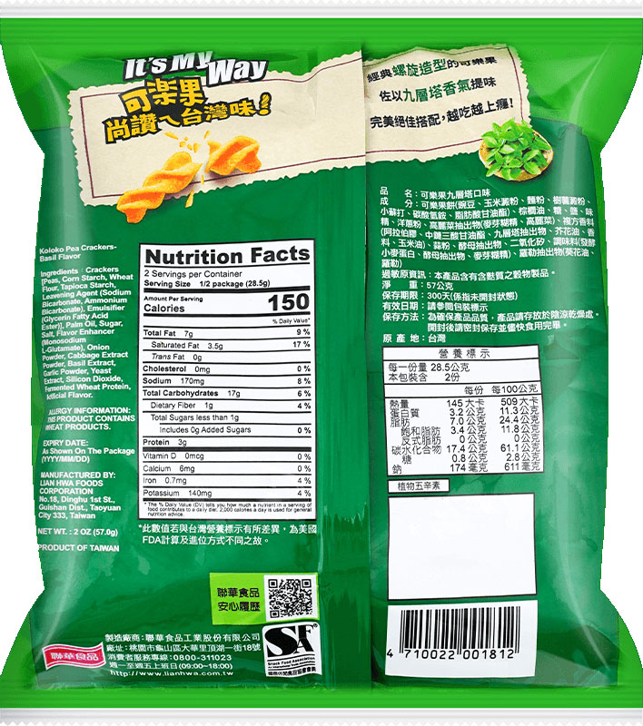 LH06 聯華 可樂果豌豆酥 57g 九層塔風味