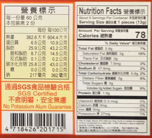 ▶️商品成份:高筋麵粉、軟質棕櫚油、芥花油、大豆油、鹽、食品級銨粉