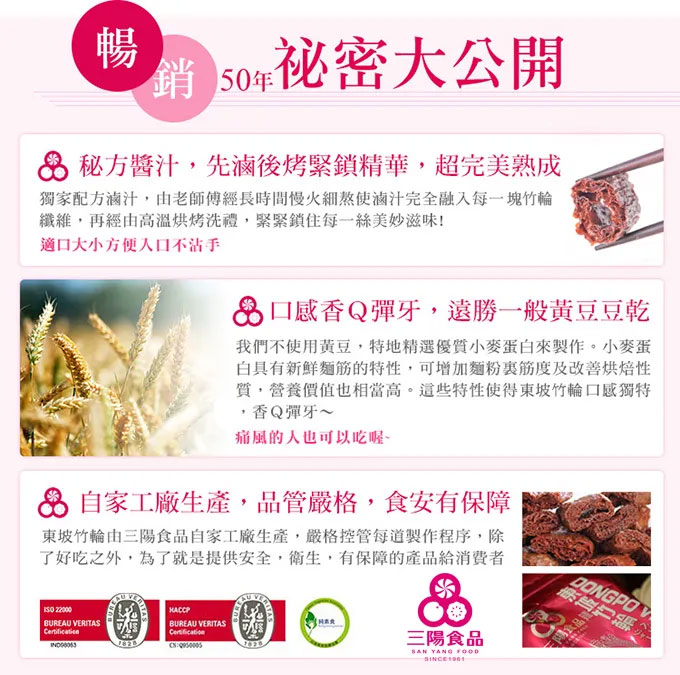 ✅精選優質小麥蛋白及獨家配方滷汁,由老師傅經長時間慢火細熬使滷汁完全融入,再經由高溫烘烤,緊緊鎖住每一絲美妙滋味。