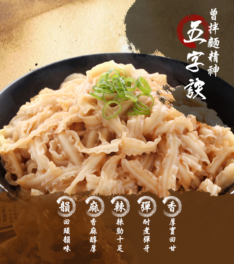 ◆以香、彈、麻、辣、韻五字訣為曾拌麵精神