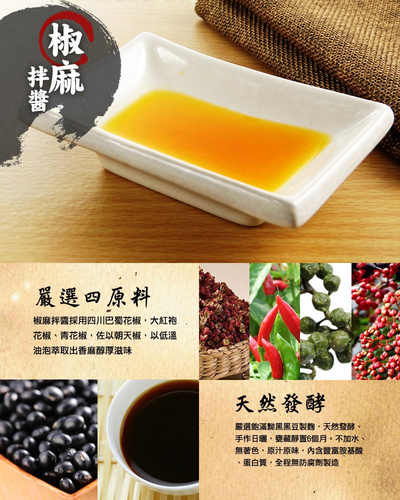 椒麻拌醬採用四川巴蜀花椒,大紅袍花椒、青花椒,佐以朝天椒,以低溫油泡萃取出香麻醇厚滋味