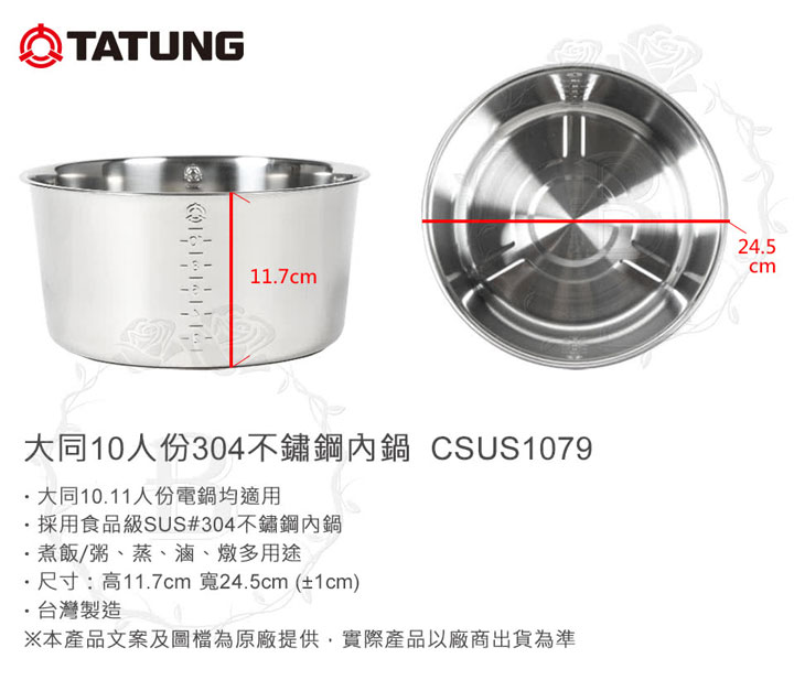 TT08 大同 10,11人份 304 不鏽鋼內鍋 CSUS1079