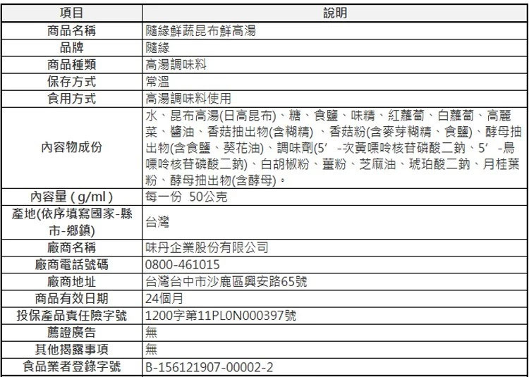 VD31 味丹 鮮蔬昆布鮮高湯 50g