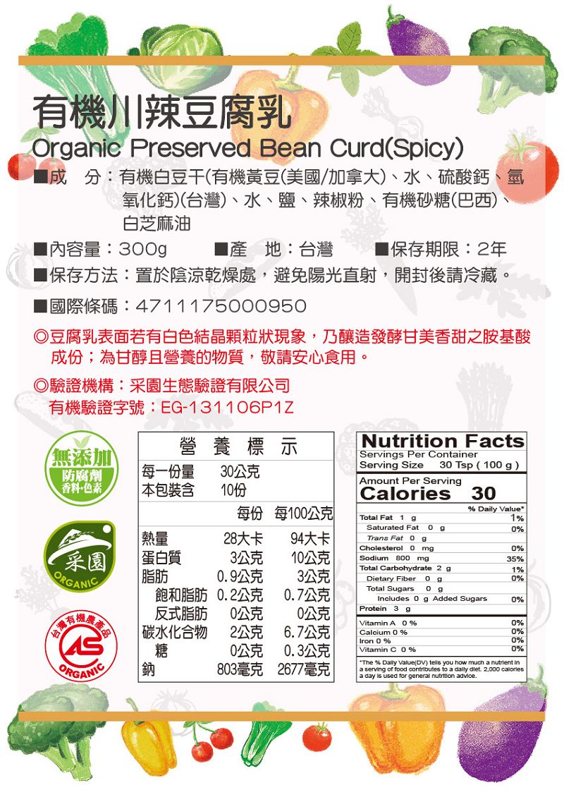 WJ19 味榮 有機川辣豆腐乳 300g