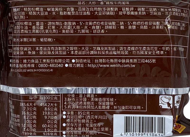 WL13 維力 大炒一番 鐵板牛肉 85g X 4包入