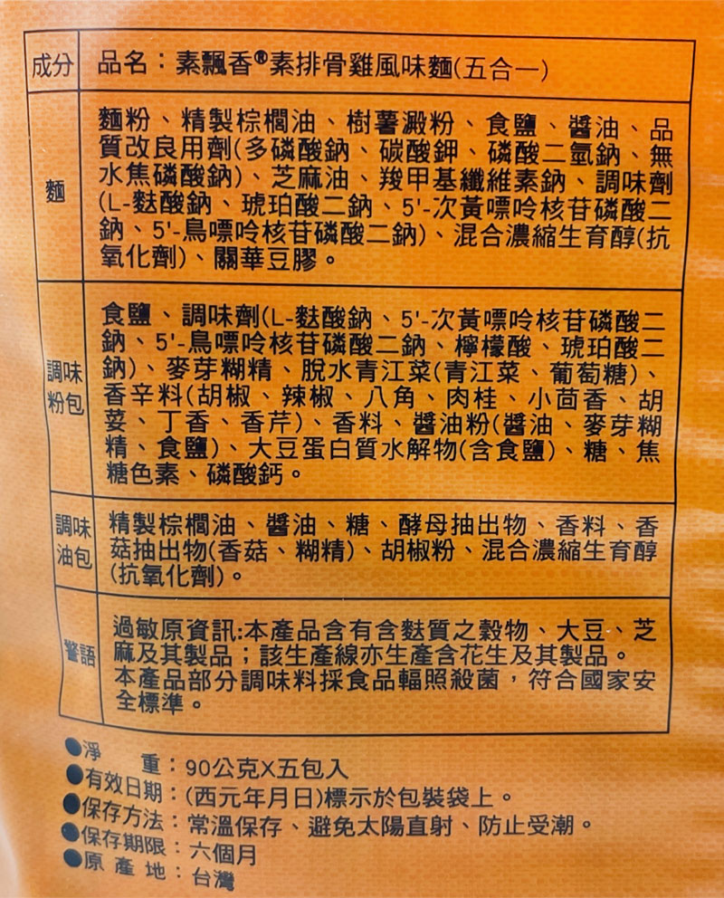 WL25 維力 素飄香 素排骨雞風味 90g 5包入