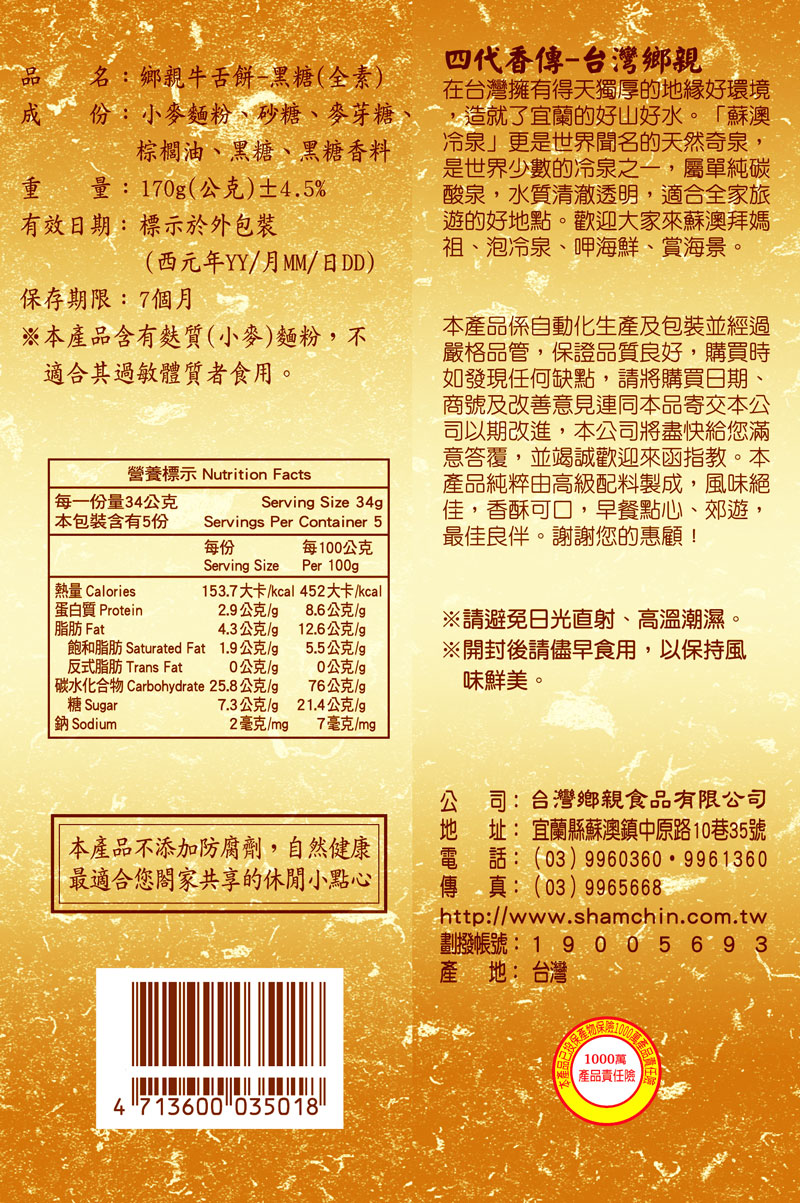 YC02 台灣鄉親 牛舌餅 黑糖 170g
