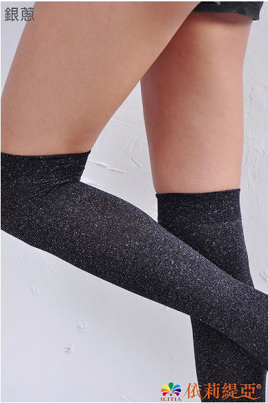 YL1420-4S 金銀蔥厚款膝上襪(黑銀蔥)