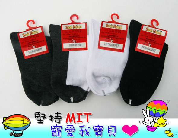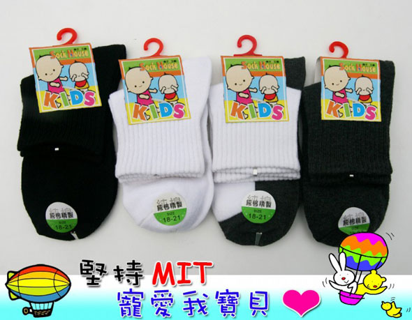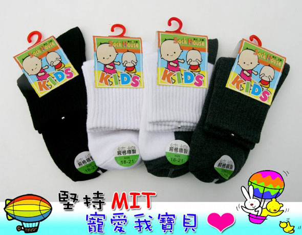 YL2409-3M 高級1/2休閒大童襪(18~21cm,黑&白)